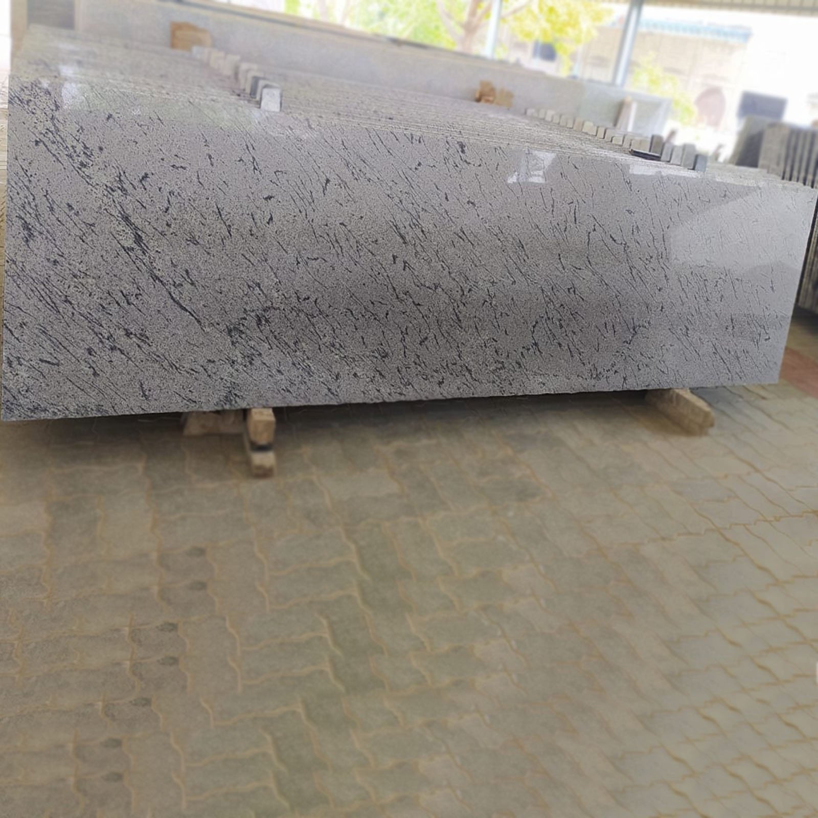 French White Granite is quarried in South India and features an attractive grayish-white base adorned with unique patterns of grey streaks against darker grey shades. Ideal for kitchens, the stone is widely used for countertops, vanity tops, worktops, steps, risers, and elegant flooring tiles.