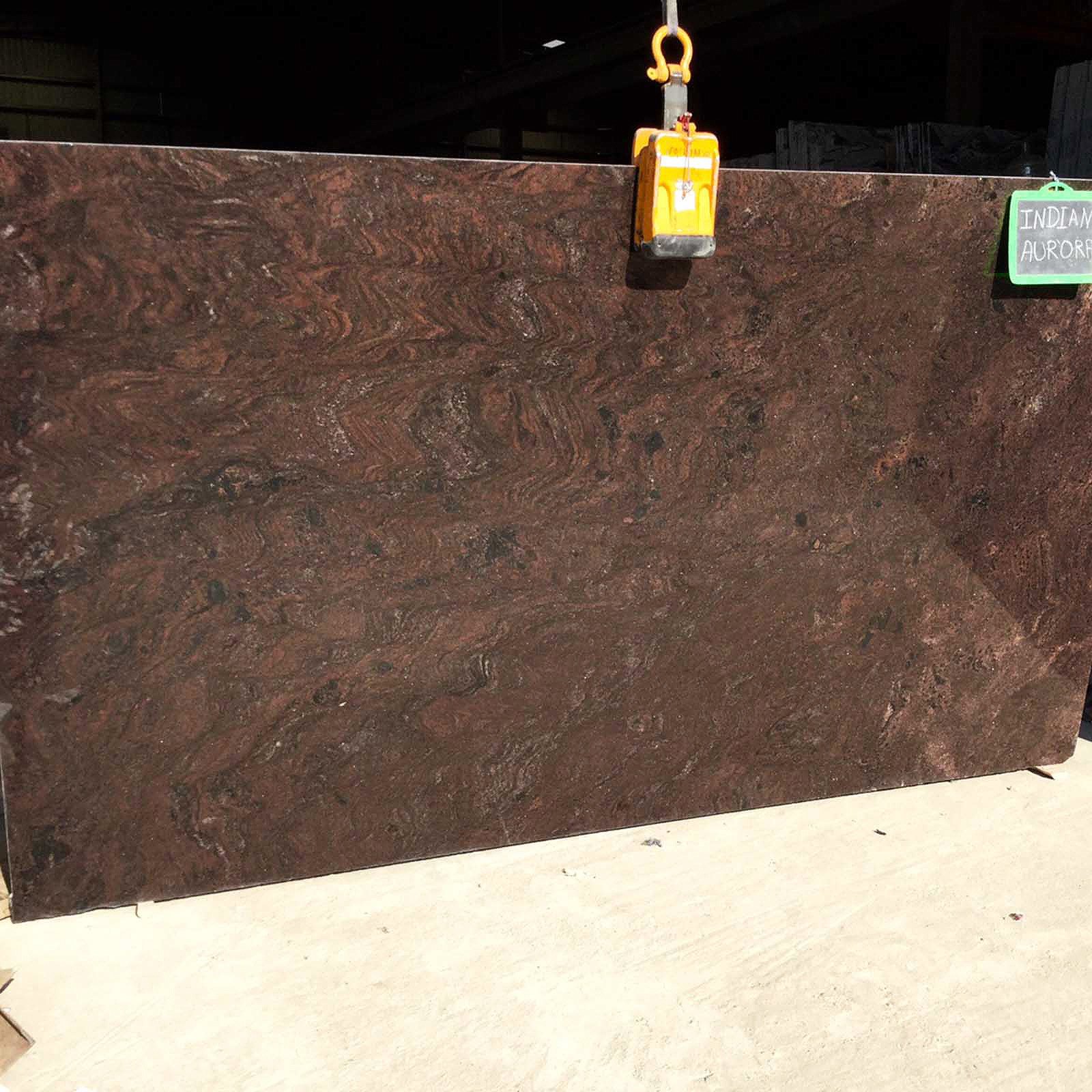 Indian Aurora Granite is a bold South Indian stone that features a warm reddish-brown base enriched with artistic waves and swirls in tones of grey, red, and brown. Its unique surface patterns bring distinctive style, making it equally suited for interior or exterior design projects.