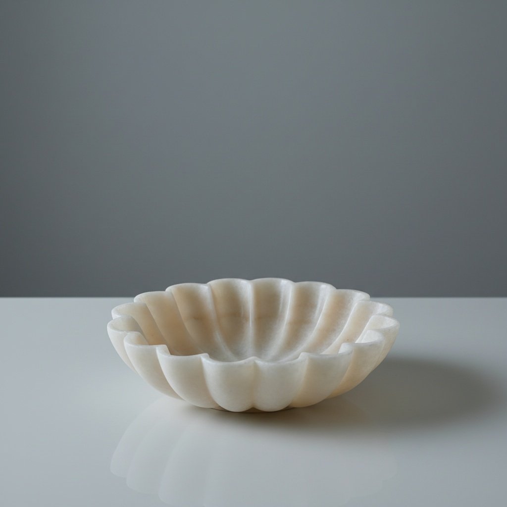 Each bowl is unique, showcasing subtle variations in color and vein pattern inherent to Makrana stone. A balanced weight and low profile offer presence without overwhelming your surface, while the wide opening makes it as practical as it is beautiful—ideal as a catchall in the entryway or a statement accent in the living room.